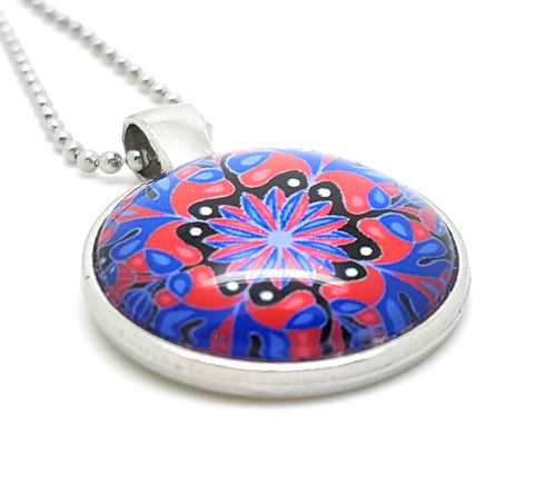 This unique glass dome pendant is made up of striking graphics to reflect the wonderful colours nature reflects. This intricate piece of jewellery is sure to enhance any outfit or even brighten your day while wearing it.